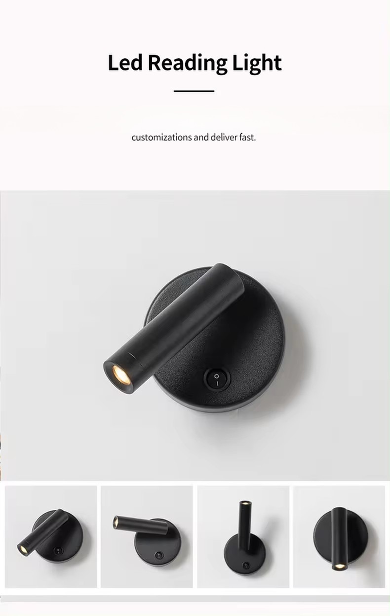 室内表面に設置された現代アルミ製の回転式ベッドサイド LED読書壁灯 ホテル用 LEDライト 夜読書ランプ